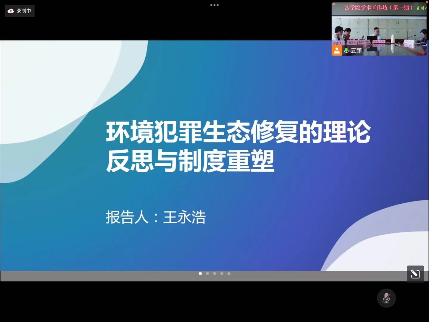 9月6日下午,麻将游戏下载 以线上线下相结合的方式顺利举办“麻将游戏下载 学术工作坊”第一期活动。王永浩博士以《环境犯罪生态修复的理论反思与制度重塑》为题,与师生们进行交流。活动由免费麻将游戏下载 副院长任中秀主持,资源环境麻将游戏下载 牛莉芹教授、免费麻将游戏下载 秦建芝博士、杨剑炜博士作为与谈人参与讨论。