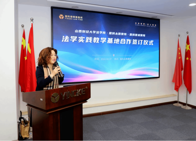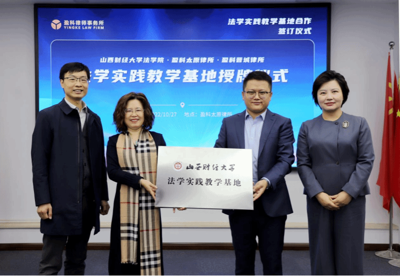 金风送爽,桂花飘香,正值中国共产党第二十次全国代表大会胜利召开之际,为落实党中央科教兴国战略,强化现代化法治建设人才支撑,2022年10月27日上午,免费麻将游戏下载 与北京盈科(太原)律师事务所、北京盈科(晋城)律师事务所 “法学实践教学基地”揭牌仪式在盈科太原律所顺利举行。麻将游戏下载 院长樊云慧、副院长任中秀、副院长陈云朝、团委书记陈思静、办公室负责人柴晓波、教学秘书张琦,以及盈科太原律所执行主任杨宏彦、党总支书记张金才、管委会主任史竹敏、人才战略与发展委员会主任梁晓燕、团委书记张洪源、刑事专业委员会秘书长车奔、执行主任助理杜晓青、人资部主管郭敏出席了本次仪式。
