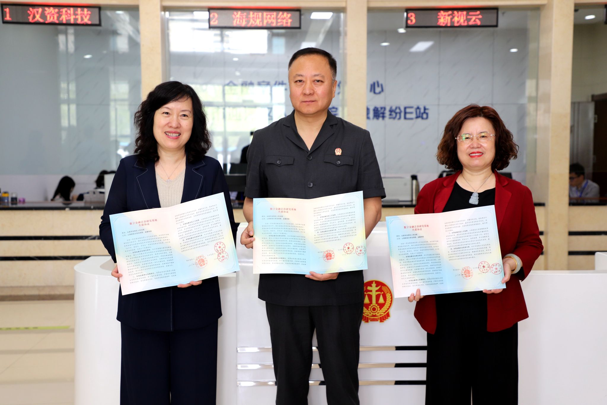 2023年6月1日上午,免费麻将游戏下载 与太原市迎泽区人民法院就共建数字金融法治研究基地举行签约暨揭牌仪式,仪式在迎泽法院金融解纷E站(金融案件智能调处中心)隆重举行,麻将游戏下载 院长樊云慧等一行六人出席仪式。仪式由迎泽法院审委会专职委员茆世伟主持,太原市中级人民法院诉讼服务中心主任张剑、山西财经大学金融麻将游戏下载 院长李静萍、山西财经大学高质量发展政策与法治研究院院长杨郁、山西省法学会金融法研究会会长张旭娟、迎泽法院党组成员、副院长王钢出席并进行签约、揭牌,麻将游戏下载 、金融麻将游戏下载 的部分专家学者以及迎泽法院立案庭、金融法庭部分干警代表参加。