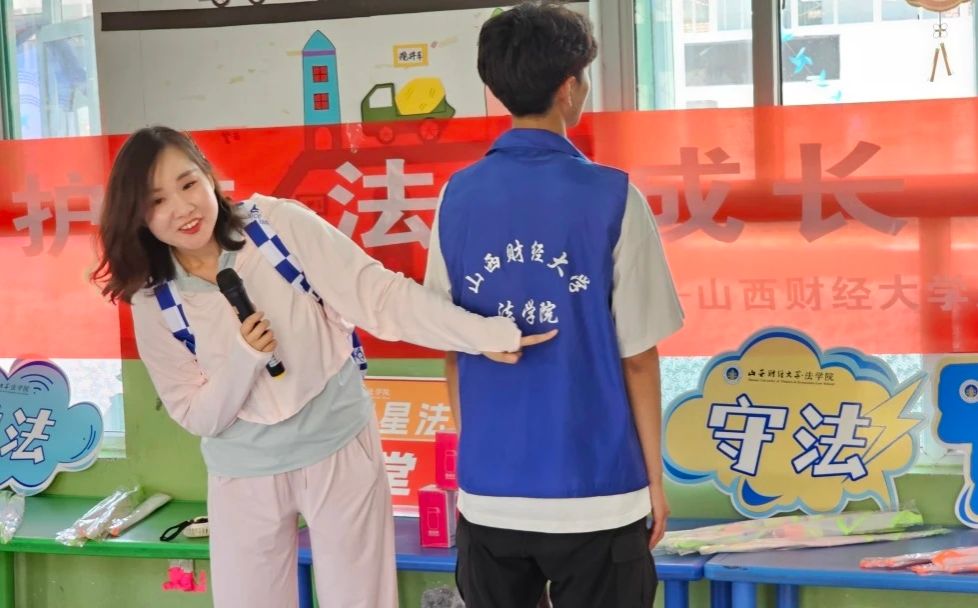 活动伊始,实践队员们向小朋友们表演了儿童普法情景剧,总共分为三篇剧目,均是根据儿童绘本和实际案例进行改编。通过表演情景剧的形式对未成年人、家长开展防性侵、防网络成瘾、防诈骗普法宣传、教育和引导。实践队员们生动地演绎了剧目内容,让大家在观演中潜移默化地知法学法懂法,精彩的演出引来小朋友和家长们的阵阵掌声。