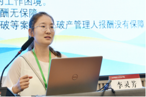 上海市协力(苏州)律师事务所律师薛恒发言题目为《破产管理人陪产规则的检视与完善》;山西晋凯律师事务所律师郝章彰发言题目为《自然人执行不能案件的利益平衡》;山西邦宁律师事务所律师刘华锦发言题目为《破产程序中债委会制度的思考》;北京德恒(太原)律师事务所王强、刘宇发言题目为《浅谈房地产企业破产管理人履职风险及防范对策》;山西邦宁律师事务所律师韩靓发言题目为《破产程序下刑民交叉的问题研究》;山西财经大学民商法硕士研究生贾伟科发言题目为《论我国破产管理人履职风险与防范研究》;山西财经大学硕士民商法研究生李灵芳发言题目为《论我国破产管理人报酬制度的优化因素》。
