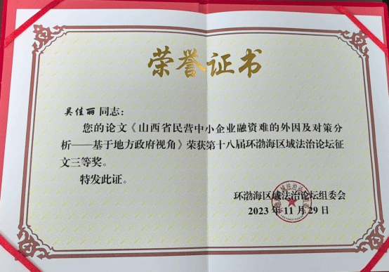 免费麻将游戏下载 学生积极投稿参与本届论坛,2022级法学硕士专业丁正天同学荣获二等奖,2021级法学硕士专业吴佳丽同学与2021级法律硕士(非法学)专业赵真同学分别荣获三等奖,并受邀参会,一同获奖并受邀参会的嘉宾包括但不限于:北京市延庆区人民法院院长、河北省衡水市景县人民法院院长、辽宁省大连市西岗区人民检察院检察长、太原科技大学麻将游戏下载 副院长、山西大学麻将游戏下载 教授、天津工业大学麻将游戏下载 教授、济南大学政麻将游戏下载 教授、天津大学麻将游戏下载 副教授、中国海洋大学麻将游戏下载 副教授、北京市丰台区人民法院员额法官、天津市人民检察院高级检察官、浙江大学光华麻将游戏下载 法学博士生、山东大学麻将游戏下载 博士后、山西大学麻将游戏下载 法学博士等。