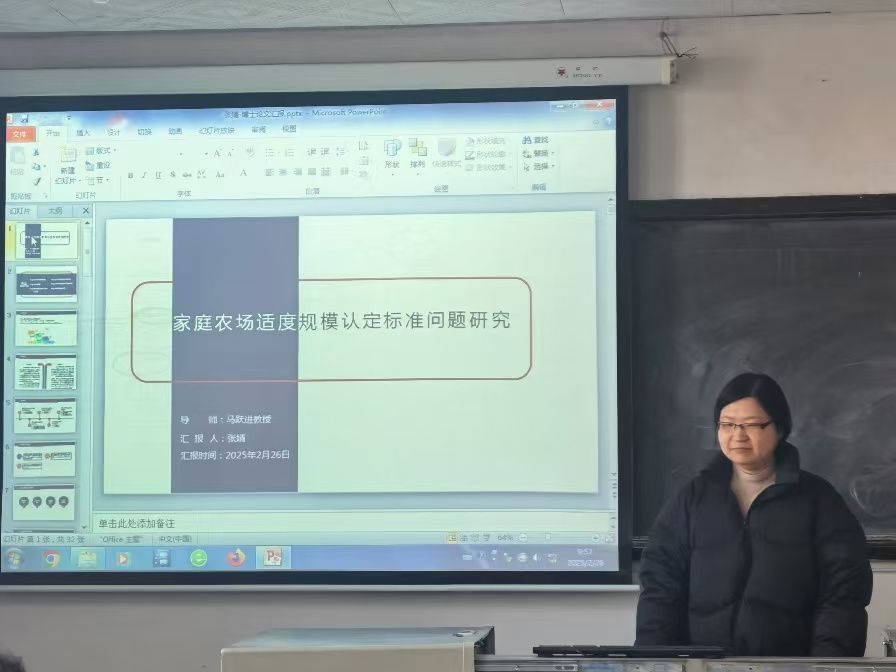 2018级法律经济学博士研究生张婧以《家庭农场适度规模认定标准问题研究》为题进行了报告发言。她从研究现状、理论基础、研究分析框架、研究方法及研究内容等方面展开报告,以农业适度规模经营理论、农户行为理论、交易费用理论、农户行为决策理论为基本依据,从法律经济学视角分析我国家庭农场适度规模的认定标准,构建了一个基于多种要素综合考察下的更为开放、灵活的测评体系,由此剖析不同目标导向下的家庭农场适度经营规模。