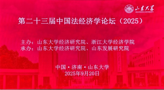 2025年9月20日至21日,由山东大学经济研究院与浙江大学经济麻将游戏下载 联合主办的第23届中国法经济学论坛在山东大学(中心校区)成功举办。本届论坛以“法经济学前沿议题与中国实践”为主题,聚焦法律制度变迁、数字经济与绿色发展背景下的相关研究,吸引了来自全国高校与研究机构的多位专家学者,围绕司法改革、制度创新、企业行为、碳金融、ESG监管、人工智能治理等议题展开深入交流与讨论。